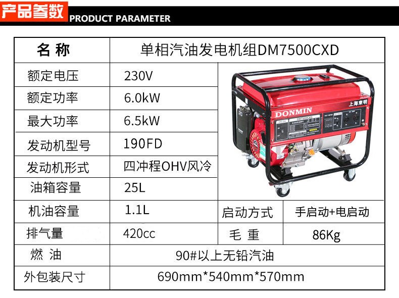 - 6KW三相汽油發(fā)電機組,鑰匙電啟動發(fā)電機DMS7500CXD