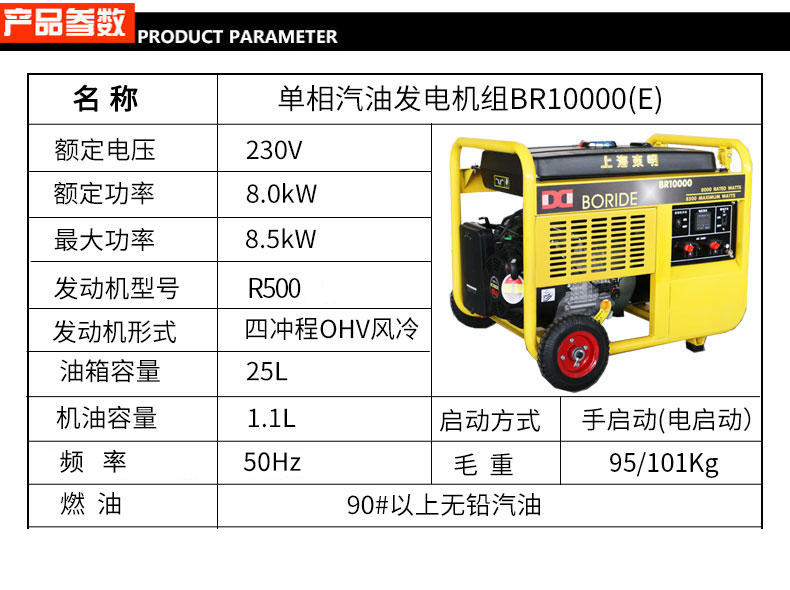 * 表示必填采購:上海東明單相8kW小型汽油發電機組