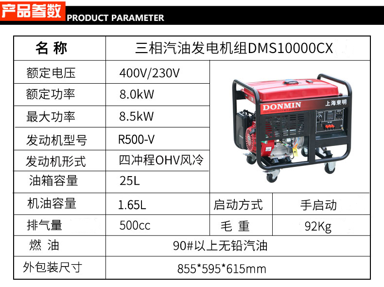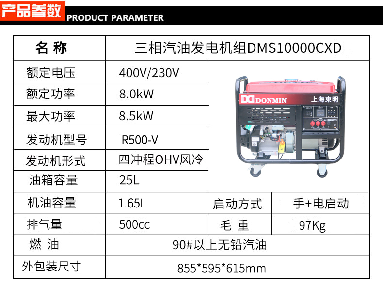 三相8KW汽油發電機 DMS10000CX/D