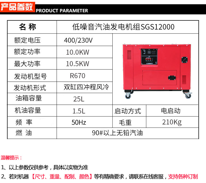 * 表示必填采購:三相10kW低噪音汽油發電機 SGS12000