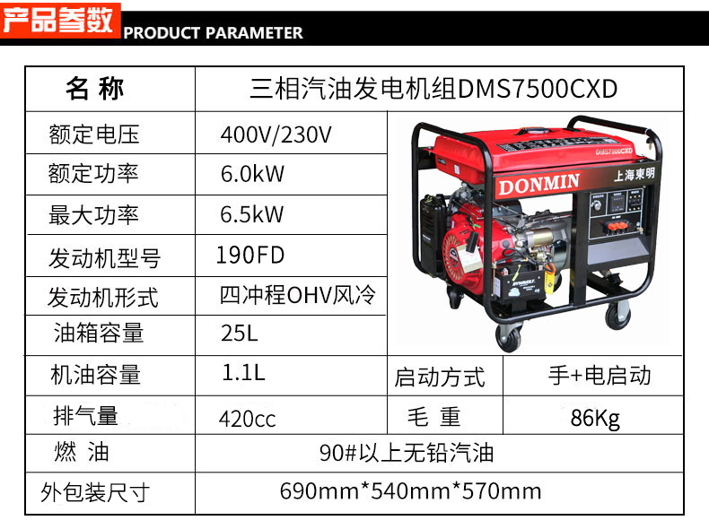 * 表示必填采購:三相6kW汽油發電機 DMS7500CXD電動
